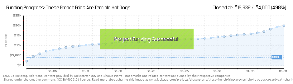 Hi all! Thanks for backing These French Fries Are Terrible Hot Dogs. This whole thing is very exciting for me, and probably one of the cooler things I've done in life, with the other thing probably being that time I had an entire bus row to myself on... (Read More)