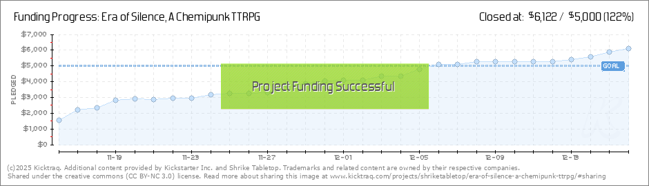Hey all! Robin here. Writing to let you all know that as of today Era of Silence is fully funded! That's right, thanks to your generous support we have funded the final version of Era of Silence. Thank you so much. With your help, we've brought a... (Read More)