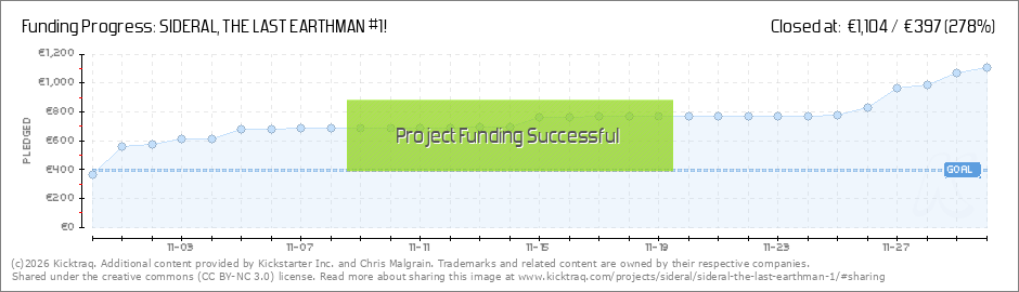 Hi, thanks to you the goal was reached in less than a day! It was a low goal but it's my first Kickstarter and I thought people would mostly pledge for Sideral #1 for $5. It's great to see that the other titles are chosen too. Thank you all very... (Read More)