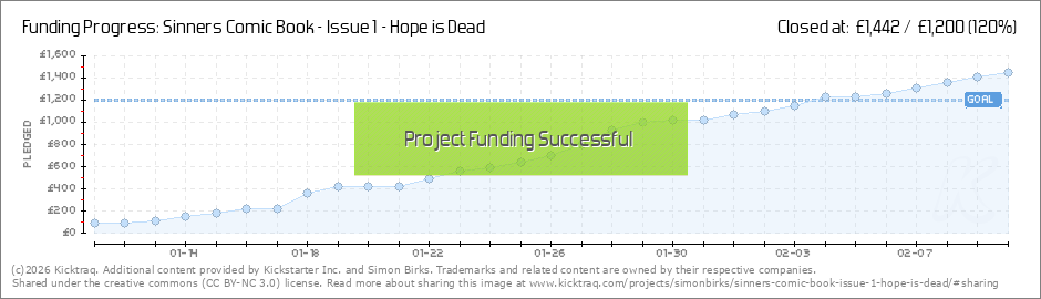 Sinners Issue 1 Excerpt Hi there, One day in and we're well on our way! Thank you to everyone who's supported us so far! I wanted to let you know that I've added another reward, at the £20 level! For £20 I will give you feedback on a comic... (Read More)