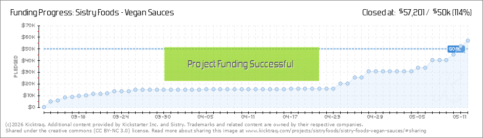 They created Ranch, Chili Chipotle and JalepeƱo Cilantro sauces under the brand Sistry Foods. The sisters created a Kickstarter 15 days ago and have raised more than $14,000. Their goal is $50,000. (Read More)