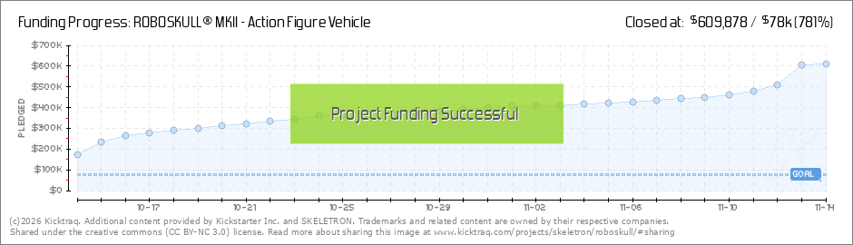 Dear ROBOSKULLERS, Thank you all so, so much! The response to our launch has been overwhelming! We believed ROBOSKULL was a winner, but did not expect you to fund us in a matter of minutes and to then blaze through multiple stretch goals within... (Read More)