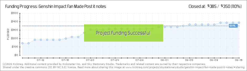 Hello Everyone! Thank you so much for supporting my Kickstarter! We're close to goal, currently sitting at 86% with 22 days to go! Β I've made some updates to the unlockable goals, with Kaeya and Diluc being unlocked at 350, Barbara and Jean at 400,... (Read More)
