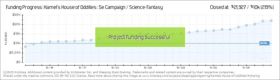 Wow, what a response - we are fully funded as of this morning! We all at Sleeping Giant Gaming are humbled and sincerely grateful for your support of our first Kickstarter project. We are incredibly excited to get the Hamel's House of Oddities... (Read More)