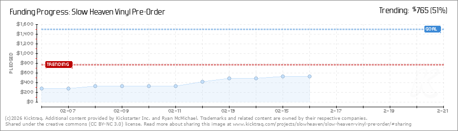 Help your backers reach your daily goals and help others see how you're doing. It's easy, with Kicktraq Mini.Here are a few quick snippits of code you can use to embed your personalized widget on your website, in your blog, and even on your favorite forum.