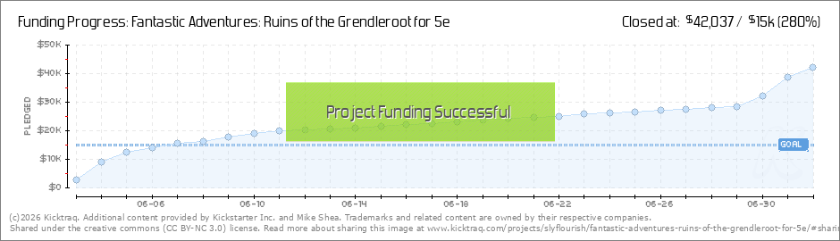 Today we broke $30,000 for Fantastic Adventures, Ruins of the Grendleroot and crossed our final stretch goal! All backers will now receive a wallpaper pack of Jack Kaiser's amazing artwork for the book and a whole new chapter with a campaign outline... (Read More)