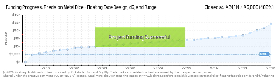 Sly Kly launched a Kickstarter campaign in order to fund “Floating Face” dice sets. (Read More)