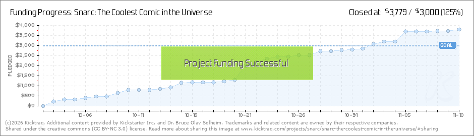 Thank you Snarc supporters! We have reached our goal and are striving for even a little bit more. It all helps defray the substantial costs of producing a good quality comic book. The whole Snarc team is so grateful for your kindness and generosity.... (Read More)