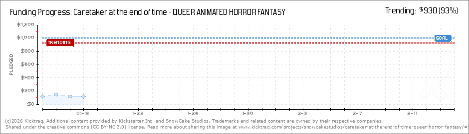 Help your backers reach your daily goals and help others see how you're doing. It's easy, with Kicktraq Mini.Here are a few quick snippits of code you can use to embed your personalized widget on your website, in your blog, and even on your favorite forum.