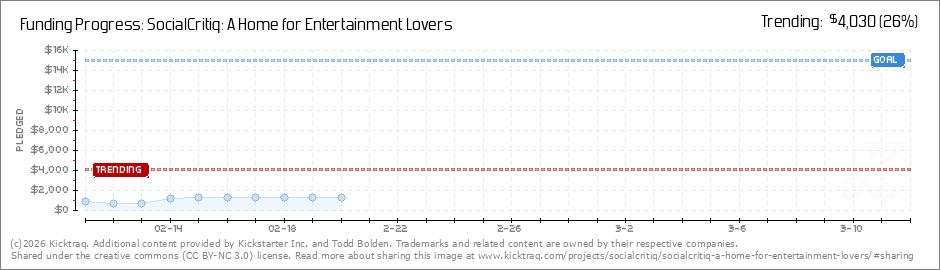 Help your backers reach your daily goals and help others see how you're doing. It's easy, with Kicktraq Mini.Here are a few quick snippits of code you can use to embed your personalized widget on your website, in your blog, and even on your favorite forum.