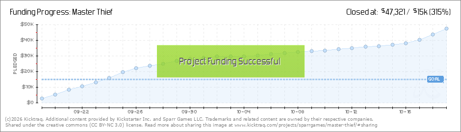 Thank you!We are in completely awe. Yesterday we managed to meet our goal of $15,000! This means a lot to us. It means that all of our hard work and effort making Master Thief is finally going to pay off. its a true relief to realize that it will... (Read More)