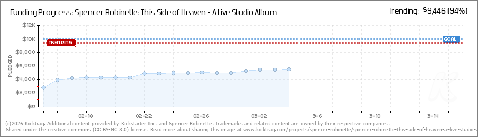 Help your backers reach your daily goals and help others see how you're doing. It's easy, with Kicktraq Mini.Here are a few quick snippits of code you can use to embed your personalized widget on your website, in your blog, and even on your favorite forum.
