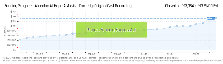 With just 30 hours to go last night, we passed our funding goal of $13,200! On behalf of the whole cast and team of Abandon All Hope, we want to thank you all for your generous support — we couldn't have done it without you. Stay tuned for more... (Read More)