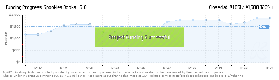 Hello Everyone! First off, thank you so much for supporting this campaign. I truly appreciate it. As of this update, we're at $1,165. That's $373 more than the first campaign. Kicktraq Data from the first Spookies campaign.While we haven't reached... (Read More)