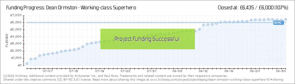 Thank You So Much The project total has been reached so the documentry Dean Ormston - Working class super hero is going to get made and its all down to your fabulous generousity. I just cannot thank you enough. you are all so very kind and I will... (Read More)