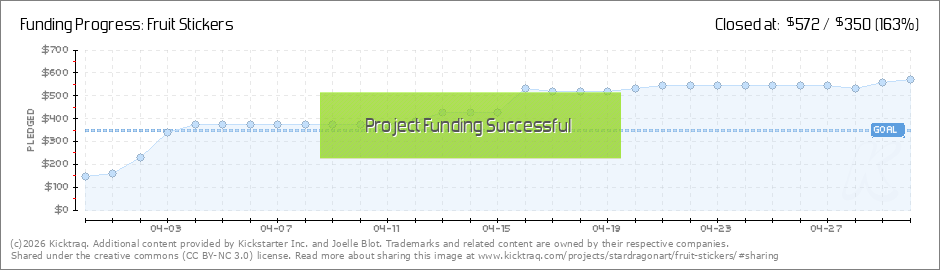 I've never had a kickstarter fund this fast! :D Thank you all so much for your support! Because of you, these fruit stickers will be unleashed upon people and fruit from all over. Keep sharing this project with people who would love it! There's still... (Read More)