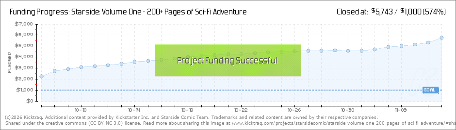 Hello backers! After just a few hours, Starside: Volume One is 212% funded!!! Thank you all so much for such a strong start to the campaign. It's incredible to see so many familiar names returning to support Starside, and new ones joining the... (Read More)