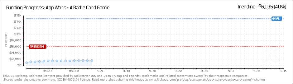 Help your backers reach your daily goals and help others see how you're doing. It's easy, with Kicktraq Mini.Here are a few quick snippits of code you can use to embed your personalized widget on your website, in your blog, and even on your favorite forum.