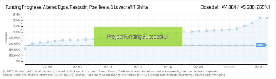 Hi there kind Patron! MINIPRINTS UNLOCKEDWe've surpassed the $13k stretch goal, so all of you pledging 2 shirts or more are getting these 2 miniprints... for FREE! LINCOLNSTEIN PRINT STRETCH at 15kIf we can break 15k in total pledges, we're adding... (Read More)
