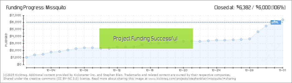 Whoa, we’re halfway there! Whoa oh, Missquito by Steve Blair! 50% funded and 2 weeks left of the Kickstarter campaign!Let’s keep the momentum going!If you’ve been on the fence and / or if you’ve been one of the now 75 followers just... (Read More)