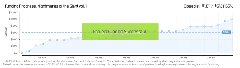 Looks like it's happening people! Nightmares of the Giant has reached its funding goal. Special thanks to all my backers who have brought the project this far. You won't be disappointed. (Read More)