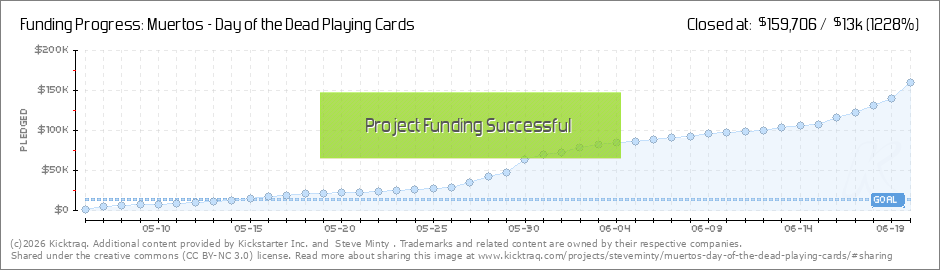 Hello everyone, hope you're having a great day so far! Awesome News! We reached $60,000! With this goal unlocked that means every backer with a pledge of 3 or more decks will receive 1 free Muertos Mourning Gold Deck! We've also reached all the... (Read More)