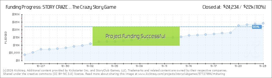 STORY CRAZE backers, WE DID IT! YES! We are now officially funded - we are making this game and are off the charts excited!!! We REALLY, REALLY, REALLY appreciate your support and belief in us. We have put our hearts and souls into this... (Read More)