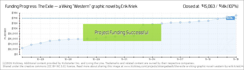 Hello Exile backers! With 50 hours to go, we are only $800 away from our goal to raise funds to bring The Exile to print! To put this into perspective, this is ten more pledges for the deluxe signed Exile package, or twenty more pledges for the... (Read More)