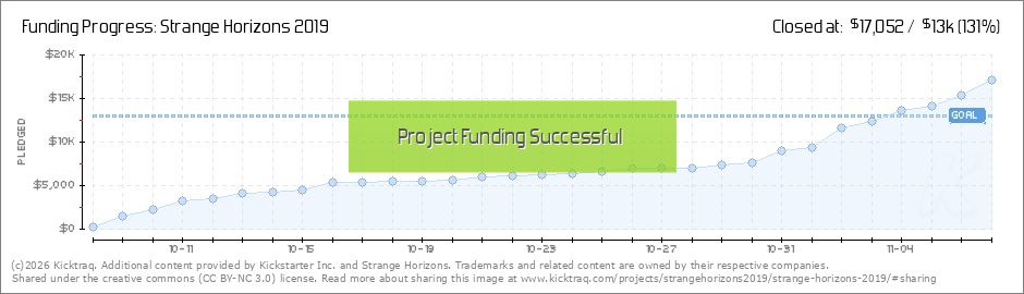 🎉 YOU DID IT. STRANGE HORIZONS IS FULLY FUNDED FOR 2019! 🎉Another great year of Strange Horizons content is secured, and we couldn't have done it without you. ♥️ As promised, we've released an extra special bonus piece of content for... (Read More)