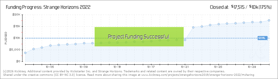 Thank you all so much. Thanks to your donations so far, Strange Horizons is fully funded to continue publishing issues through 2022, full of the fiction, poems, reviews, interviews, and analysis you help us champion. You can also look forward to new... (Read More)