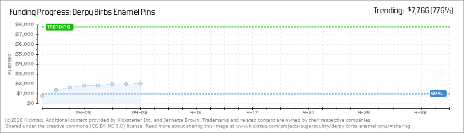 Help your backers reach your daily goals and help others see how you're doing. It's easy, with Kicktraq Mini.Here are a few quick snippits of code you can use to embed your personalized widget on your website, in your blog, and even on your favorite forum.