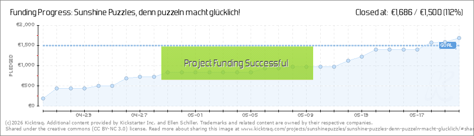Hallo Liebe Freunde von Sunshine Puzzles, Ihr habt uns einen unfassbar tollen Start ermöglicht! Mit jedem Unterstützer kommen wir unserem Ziel, unsere erste Produktion zu finanzieren, näher! Vielen Lieben Dank und wir freuen uns weiterhin auf Eure... (Read More)