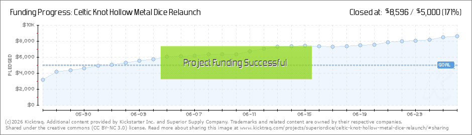 We've hit our second stretch goal, so the silver dice are now unlocked! Our next goal is the gold with black numbers, and we still have several days to go. Thanks again to everyone who got us this far! (Read More)