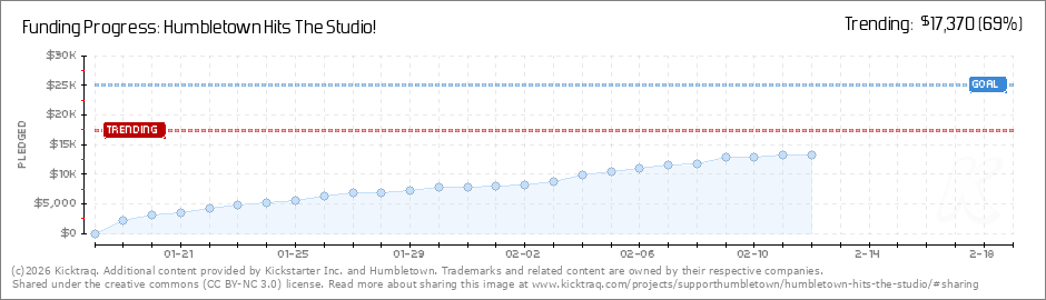 Help your backers reach your daily goals and help others see how you're doing. It's easy, with Kicktraq Mini.Here are a few quick snippits of code you can use to embed your personalized widget on your website, in your blog, and even on your favorite forum.