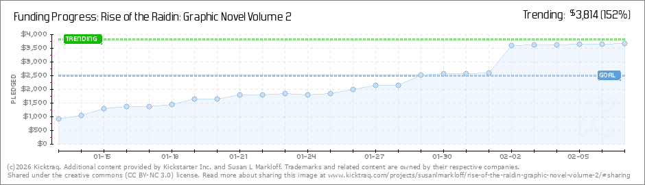 Help your backers reach your daily goals and help others see how you're doing. It's easy, with Kicktraq Mini.Here are a few quick snippits of code you can use to embed your personalized widget on your website, in your blog, and even on your favorite forum.