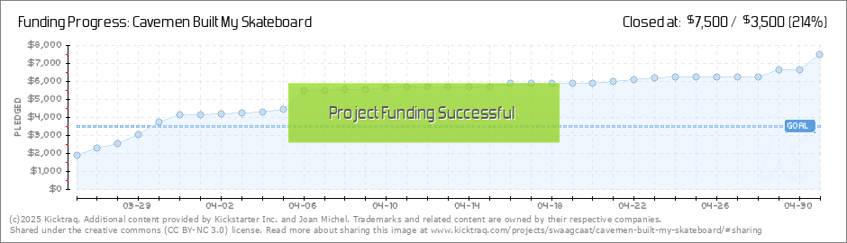 Hi there! Hope you've been well :) Here's the update on "Cavemen Built My Skateboard". First off, we reached $6k on this campaign! BIG THANK YOU to you for making this possible. You'll need an HTML5 capable browser to see this content. Play... (Read More)