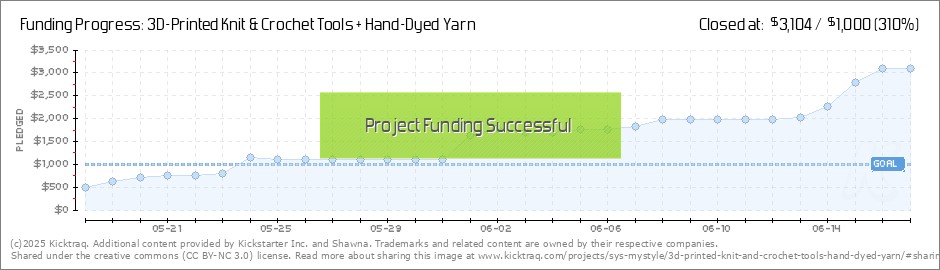 We hit the first stretch goal!!!!!!! And we are less than $300 to hitting the second!!!! Let's keep the momentum! Share this with fiber artists; friends, family, acquaintances, enemies and even a stranger! (Read More)