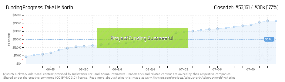 We're 98% funded and so close to reaching our goal! Make a pledge or help signal boost, and Take Us North :)