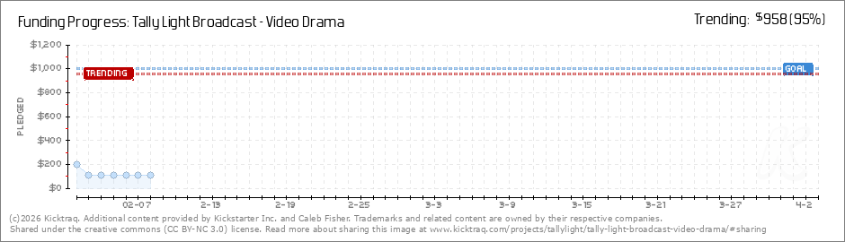 Help your backers reach your daily goals and help others see how you're doing. It's easy, with Kicktraq Mini.Here are a few quick snippits of code you can use to embed your personalized widget on your website, in your blog, and even on your favorite forum.