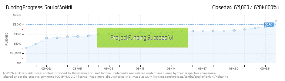 Dear backers, We are thrilled to announce that the Soul of Ankiril Kickstarter campaign has successfully reached its funding goal! We are humbled and grateful for your support and belief in our game. Thanks to you, we will be able to bring the world... (Read More)