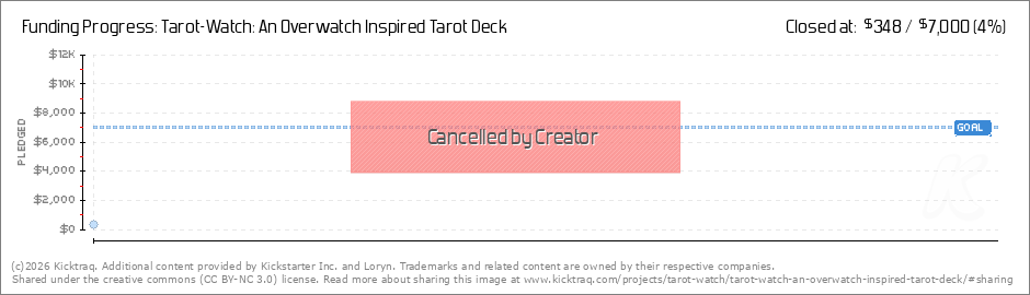 Hello, and thank you to everyone who was following and interested in backing Tarrot-watch. I've decided to go ahead and cancel this over concerns of IP. While this tarrot deck was 100% my own work, and falls within fan art, I am just a bit too... (Read More)