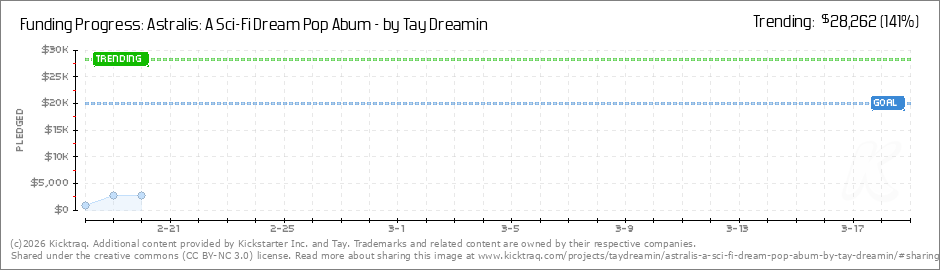 Help your backers reach your daily goals and help others see how you're doing. It's easy, with Kicktraq Mini.Here are a few quick snippits of code you can use to embed your personalized widget on your website, in your blog, and even on your favorite forum.