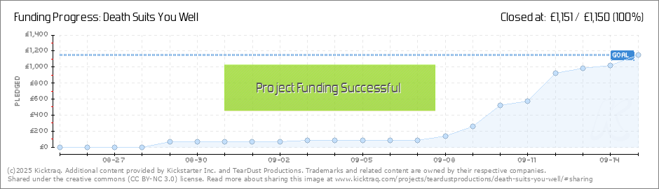 Help your backers reach your daily goals and help others see how you're doing. It's easy, with Kicktraq Mini.Here are a few quick snippits of code you can use to embed your personalized widget on your website, in your blog, and even on your favorite forum.