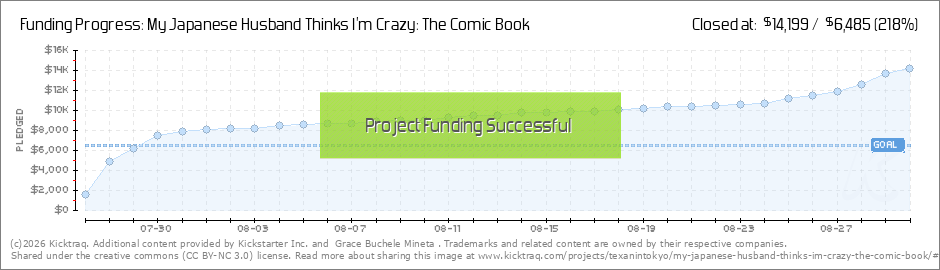 As of 3 minutes ago, "My Japanese Husband Thinks I'm Crazy: The Comic Book" is 100% funded! Wow. I cannot believe it. This project has been live for less than three days, and it is already over 100% funded. Thank you. I want to thank each and... (Read More)