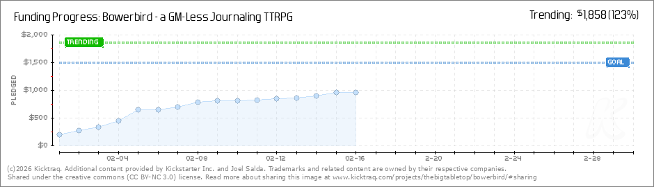 Greetings, all my fellow bowerbirds!We've had quite a great start to the campaign. I thank you all from the bottom of my heart that you have chosen to come along on this journey of love with Bowerbird. As I'm writing this we are at 54% of the way... (Read More)