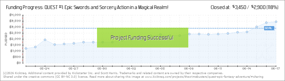 Hello, fellow adventurers! You did it! We're now just 10 hours away from the end of the campaign, and thank to your support, Quest #1 has funded and will be a reality! I want to thank you all so much for support Quest. I really appreciate it very... (Read More)