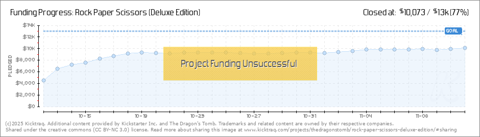 Thank you all so much for backing the Rock Paper Scissors (Deluxe Edition) campaign! I'm excited to announce that we are officially 50% funded! This is my life's work and it is what I hope to be remembered by, so thank you for supporting me.... (Read More)