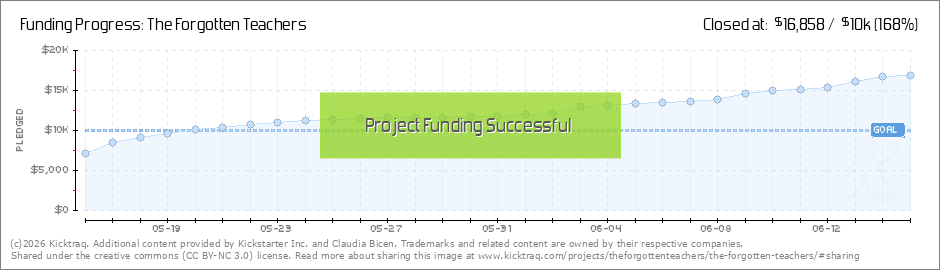 Hello everyone! What a wonderful few weeks! Since the last update, "The Forgotten Teachers" was chosen from thousands of campaigns on Kickstarter to be featured in Kickstarter's "Projects We Love" newsletter along side just 10 other projects. In... (Read More)