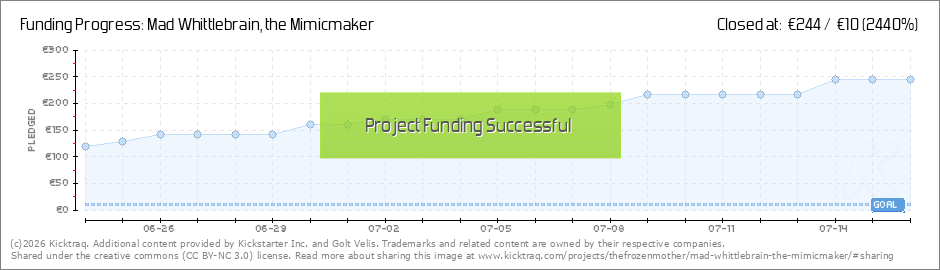 Help your backers reach your daily goals and help others see how you're doing. It's easy, with Kicktraq Mini.Here are a few quick snippits of code you can use to embed your personalized widget on your website, in your blog, and even on your favorite forum.