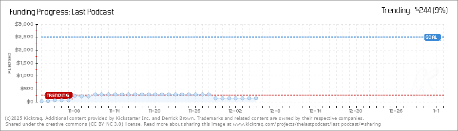Help your backers reach your daily goals and help others see how you're doing. It's easy, with Kicktraq Mini.Here are a few quick snippits of code you can use to embed your personalized widget on your website, in your blog, and even on your favorite forum.
